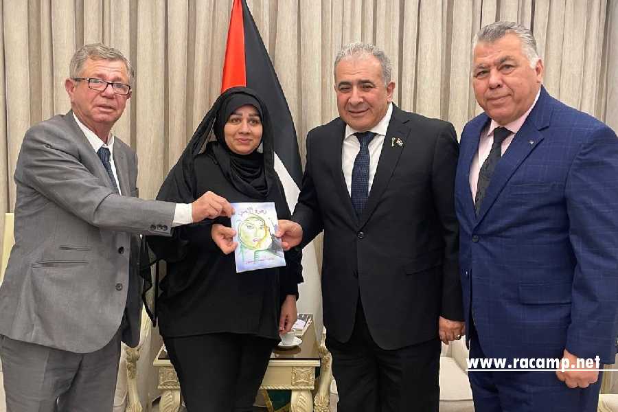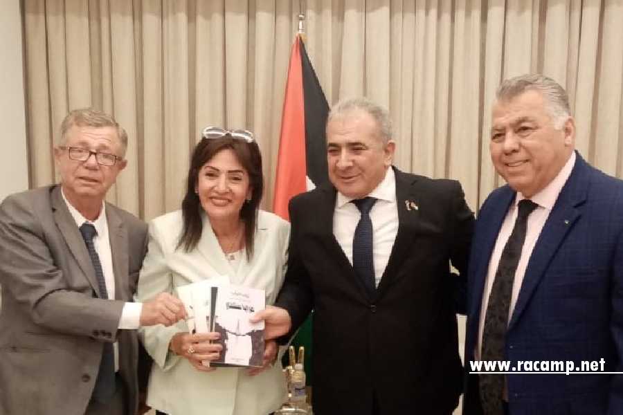 وقدم سعيد درعا تكريميا للسفير الاسعد الذي رد بكلمة شكر. كما تسلم الاسعد ديوان شعر من الشاعرة فاديا حسون والمجموعة الشعرية الكاملة من الشاعرة زينب دياب شاكرا لهما “دورهما الادبي والثقافي في جناح فلسطين بمعرض الكتاب”.