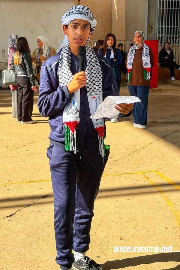 وقد تم تنظيم نشاط مشترك لطلاب المرحلتين المتوسطة والثانوية ضمن قسمي التربية المدنية والتربية الرياضية، شمل عرضًا تقديميًا يعرّف باليوم وأبعاده التاريخية والإنسانية. وتضمن النشاط كلمة لمدير المدرسة، الدكتور أسامة الأرناؤط، الذي شدّد على أن فلسطين قضية كل المسلمين وأن النصر حتمي بوعد من الله. كما قدّم عدد من الطلاب قصائد وعبارات مؤثرة من القلب للشعب الفلسطيني.