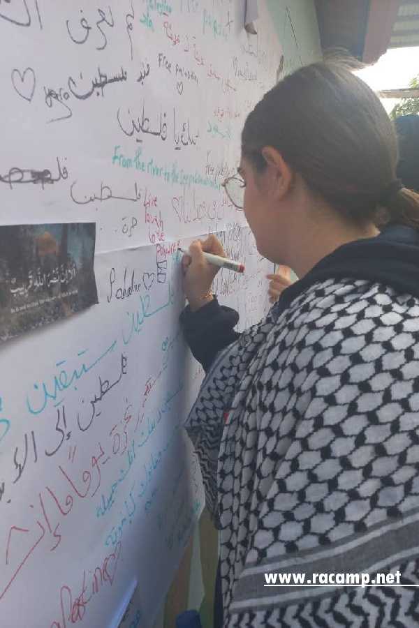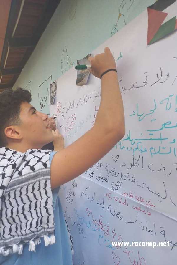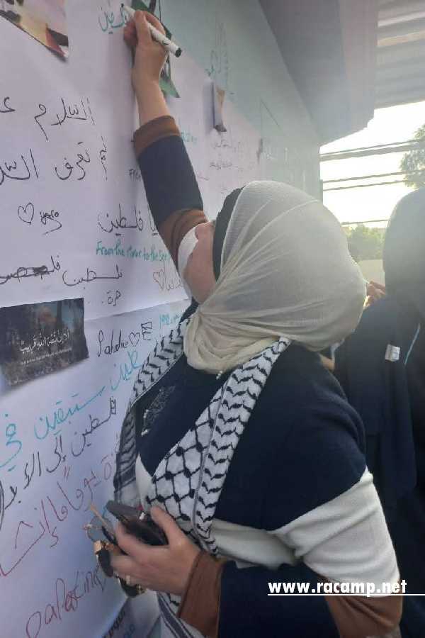 وشملت الفعالية أنشطة رياضية متنوعة تعبّر عن التضامن من خلال الروح الجماعية والتعاون، إضافة إلى مشاركة الطلاب في كتابة عبارات دعم على جدارية خاصة، وتلوين خريطة فلسطين بألوان العلم الفلسطيني، مؤكدين من خلالها وقوفهم إلى جانب الشعب الفلسطيني وحقه في الحرية والكرامة.