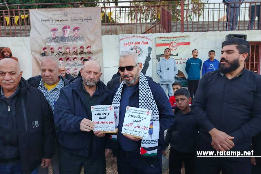 تقديم دروع تقديرية للفرق الطبية في مخيم الرشيدية تثميناً لدورهم الإنساني الطليعي.