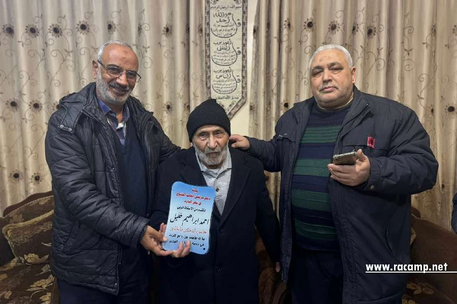 خلال الزيارة، جرى تقديم درع تكريمي للأستاذ “أبو إبراهيم”، وتخلل اللقاء كلمات وجدانية أكدت على مكانته في قلوب أبناء المخيم: