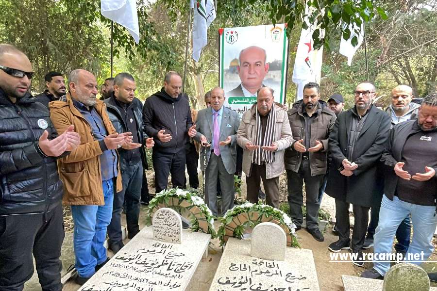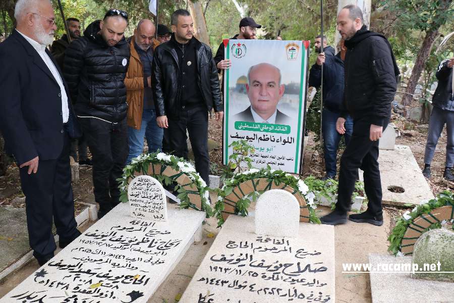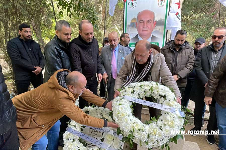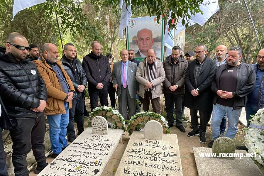 وفي مشهد امتزج فيه الحزن بالعهد، وُضعت أكاليل الورد على الضريح باسم كل من: رئيس المجلس الوطني الفلسطيني روحي فتوح، ممثلا بعضو المجلس المركزي السفير خالد عارف، وأمين سر المكتب السياسي للجبهة بلال قاسم، والدكتور علي كنج، وذلك بمشاركة العقيد فراس بركات، إلى جانب قيادات وكوادر الجبهة برئاسة مسؤول الساحة اللبنانية وعضو المجلس الوطني يوسف ناظم اليوسف وعائلة اليوسف التي ظلّت شريكة الدرب والتضحية.