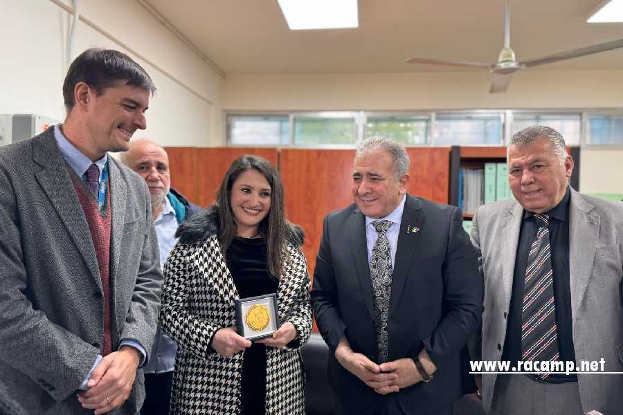 وقدم السفير الاسعد قلادة الرئيس محمود عباس لخلايلة تقديراً لجهودها وعطائها في تحفيز اجيالنا الصاعدة على مواصلة مسيرتهم التعليمية.