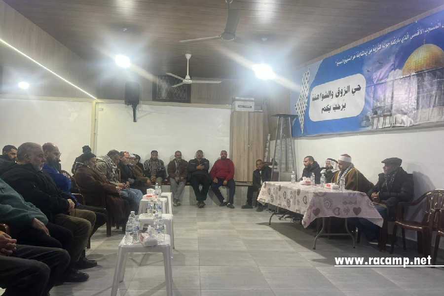 وشدد الشيخ عدس على أن ذكرى الإسراء والمعراج ليست مجرد حدث تاريخي، بل هي محطة سنوية لتجديد العهد مع الله وتعزيز الارتباط بالمسجد الأقصى المبارك، قبلة الأنبياء ومعراج الرسول ﷺ. وقد سادت المحاضرة أجواء من التفاعل الوجداني من قبل الحاضرين الذين أكدوا على أهمية هذه اللقاءات في تعزيز الروابط الروحية والاجتماعية داخل أحياء المخيم.