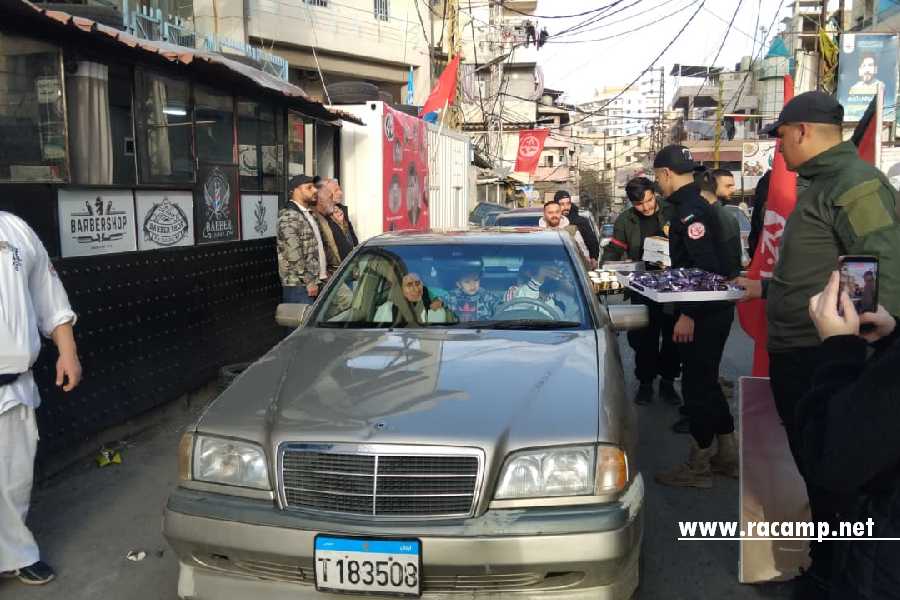 كما اقام رفاق الشهيد في العمل الشعبي حاجز محبة وزعوا فيه التمر والماء والحلويات والقهوة عن روح الشهيد يوسف مبارك .
