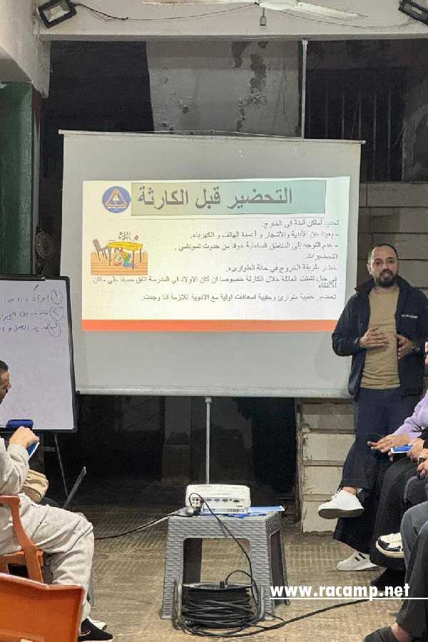 وفي المحور الثاني، ركز التدريب على “إدارة الكوارث”، حيث تم تزويد المشاركين بأسس الاستجابة السريعة، وآليات التقييم الأولي للمخاطر، وكيفية التنسيق الميداني أثناء الطوارئ، بما يضمن حماية الأرواح والممتلكات داخل البيئة المكتظة للمخيم.