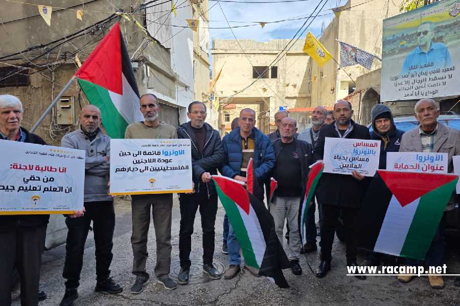 (نجتمع اليوم في مخيم المية ومية بدافع المسؤولية والقلق على مستقبل عائلاتنا وأبنائنا، رافضين وبالمطلق التقليصات التي تطال خدمات وكالة الأونروا، لأن ما يجري ليس مجرد إجراء إداري أو أزمة تمويل عابرة بل مساس مباشر بأسس الحياة الكريمة للاجئين الفلسطينيين، سيما وأن هذه التقليصات تستهدف المقومات الحياتية الأساسية من خدمات صحية، وتعليمية، وإغاثية، وتوظيفية، وكذلك “برنامج المساعدات المالية الدورية”، التي يعتمد عليها الغالبية الساحقة من أهلنا الفقراء، والمعوزين، وذوي الأمراض المستعصية…إلخ، كما وتترك هذه التقليصات آثارًا قاسية على حياة وإستقرار العائلات الفلسطينية التي تعيش أصلًا ظروفًا صعبة في مخيمات اللجوء، وتهدد أمنها الإجتماعي والإنساني، في وقت نحن أحوج ما نكون فيه إلى تعزيز الحماية والدعم لا إلى تقليص الخدمات، وتخفيض رواتب الموظفين”، وشدد على “أن الأونروا ليست مؤسسة خيرية، بل هي عنوان للمسؤولية الدولية القائمة تجاه شعب إقتلع من أرضه وما زال متمسكًا بحقوقة المشروعه، وإستمرار دورها ليس مسألة خدمات فقط بل تأكيد على أن قضية اللاجئين ما زالت حاضرة في الوعي الدولي وأن حق العودة والعيش بكرامة لا يسقطان مع مرور الزمن أو تحت ضغط الأزمات”.