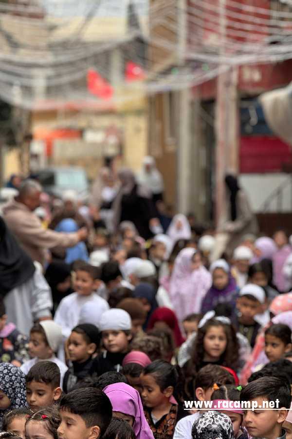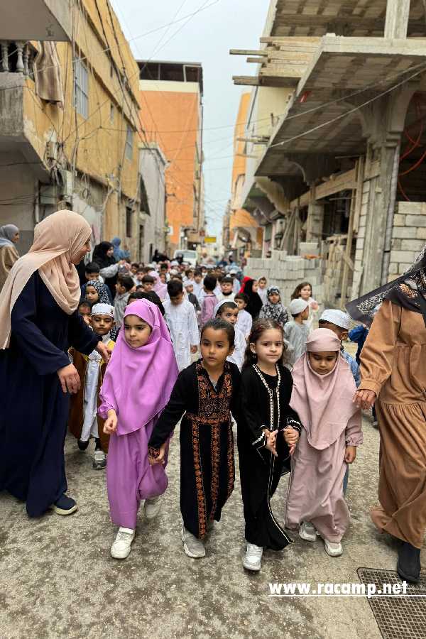 ازدانت المسيرة بمشهدية بصرية رائعة، حيث ارتدى الأطفال الملابس المستوحاة من التراث الإسلامي والفلسطيني، في لوحة فنية ربطت بين قدسية الشهر الفضيل والتمسك بالهوية الوطنية. وحمل الأطفال الفوانيس واللافتات الترحيبية، وسط تكبيرات وأناشيد رمضانية بثت روح الطمأنينة في أرجاء المخيم.