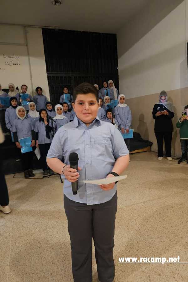 بعد ذلك، قدّم عدد من الأطفال النازحين أنشودة “أنت نور الله فجراً”، حيث صدحت أصواتهم البريئة في باحة المدرسة، حاملةً رسائل الفرح والإيمان بأن المستقبل يصنعه العلم والمحبة.