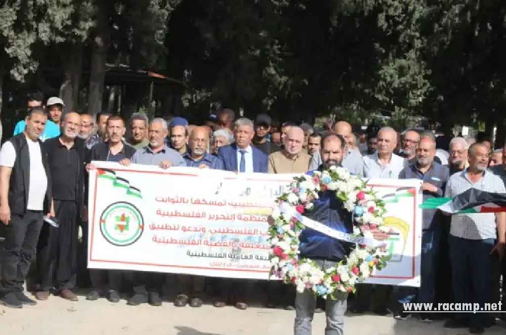 وفي ختام الفعالية، توجّه المشاركون إلى أضرحة شهداء الثورة الفلسطينية في عين الحلوة، حيث وُضع إكليل من الزهر على النصب التذكاري تخليدًا لذكراهم ووفاءً لتضحياتهم.